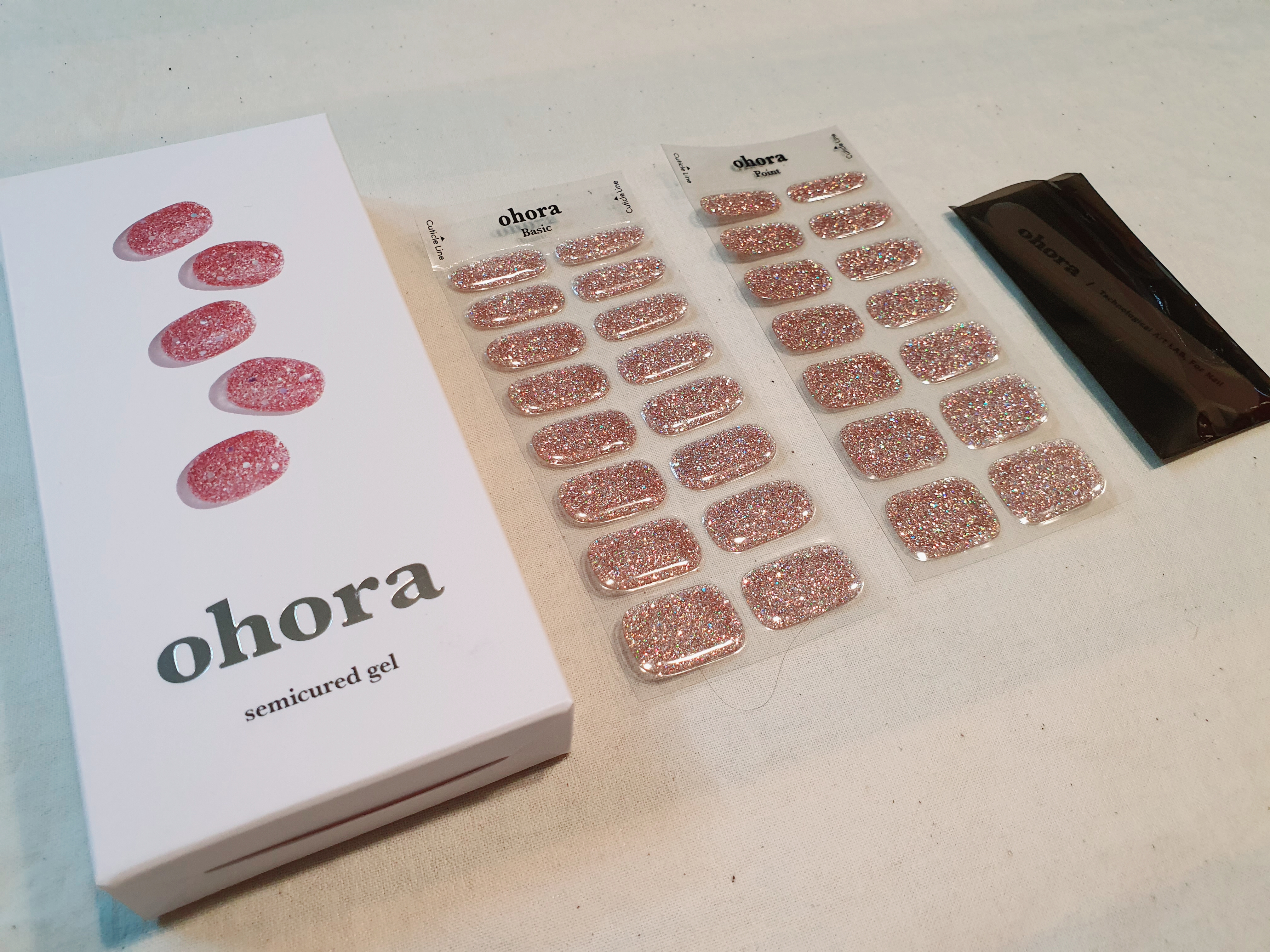 요새 젤라토팩토리 하또 하또 네일핏 제품 등 실제 젤을 일정 정도 굳혀서 스티커 형태로 판매하는 업체들이 많아 지는 것 같아요! 하또 하또 네일핏 제품은 아직 해보지는 않았는데 몇 몇 후기를 살펴보니 오호라 대비 좀 더 비닐스럽다라는 후기가 있어서 시도를 해볼지 고민하고 있습니다! 우선은 오호라에 만족하고 있기 때문에 당분간은 오호라를 할 것 같아요.