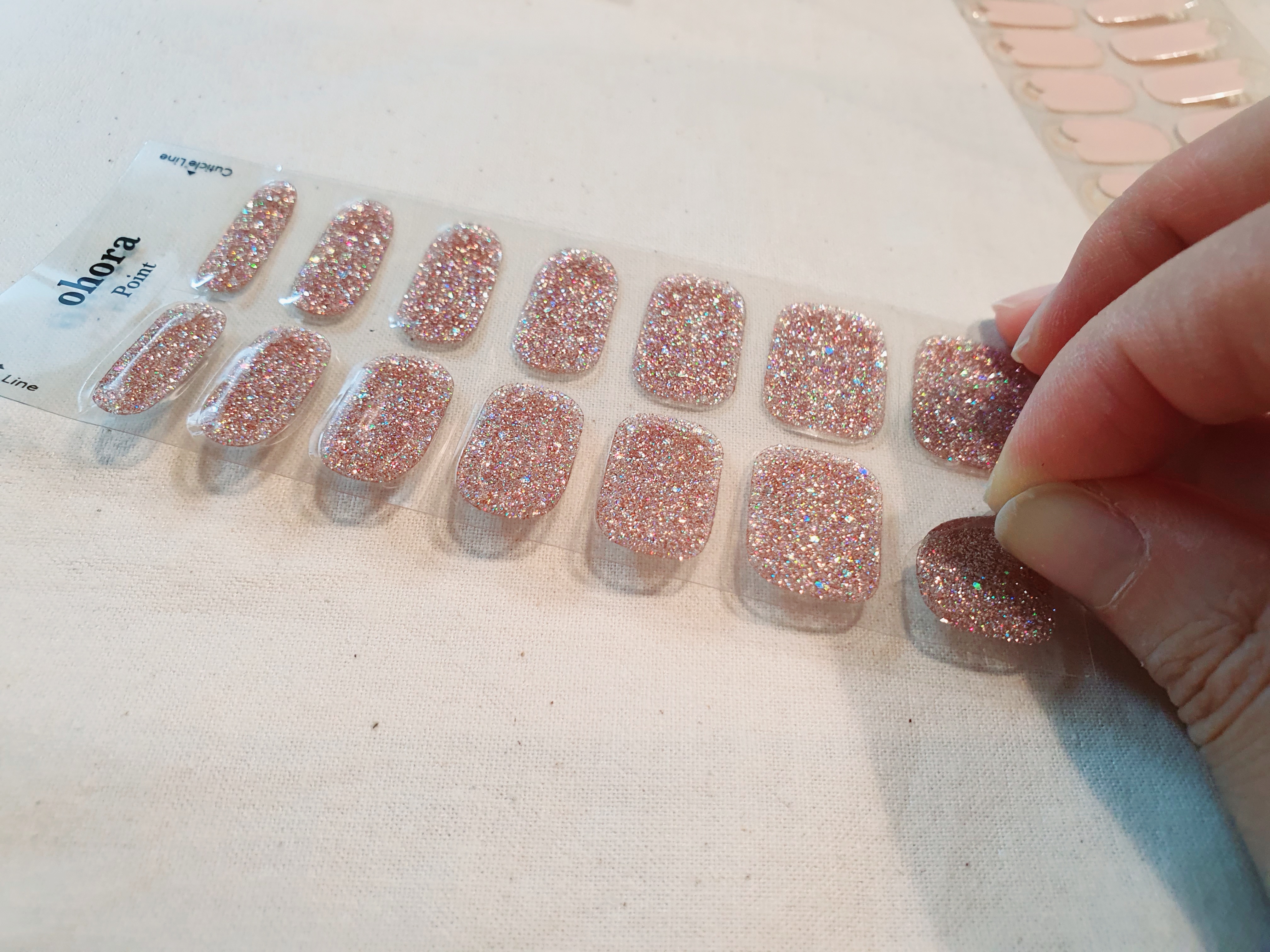 하는 방법은 이렇게 손톱에 맞는 사이즈의 스티커를 골라, 손톱에 잘 맞게 붙이면 됩니다.