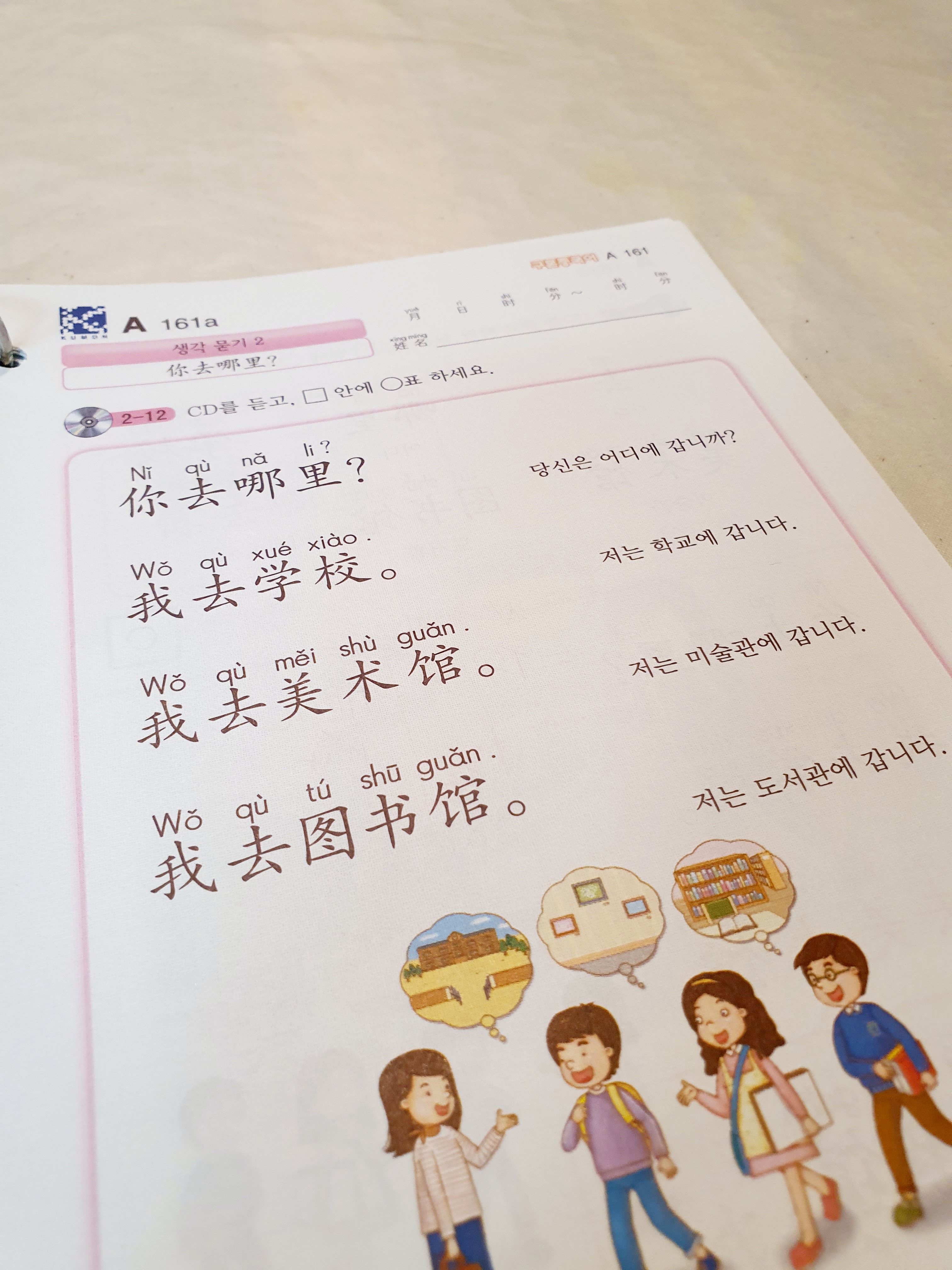3A단계는 그림과 병음을 통해 중국어 발음에 익숙해지는 단계이고, 그 이후 2A 단계는 실제로 병음 규칙을 이해하고 단어 등을 읽고 쓰는 훈련을 하는 단계입니다.